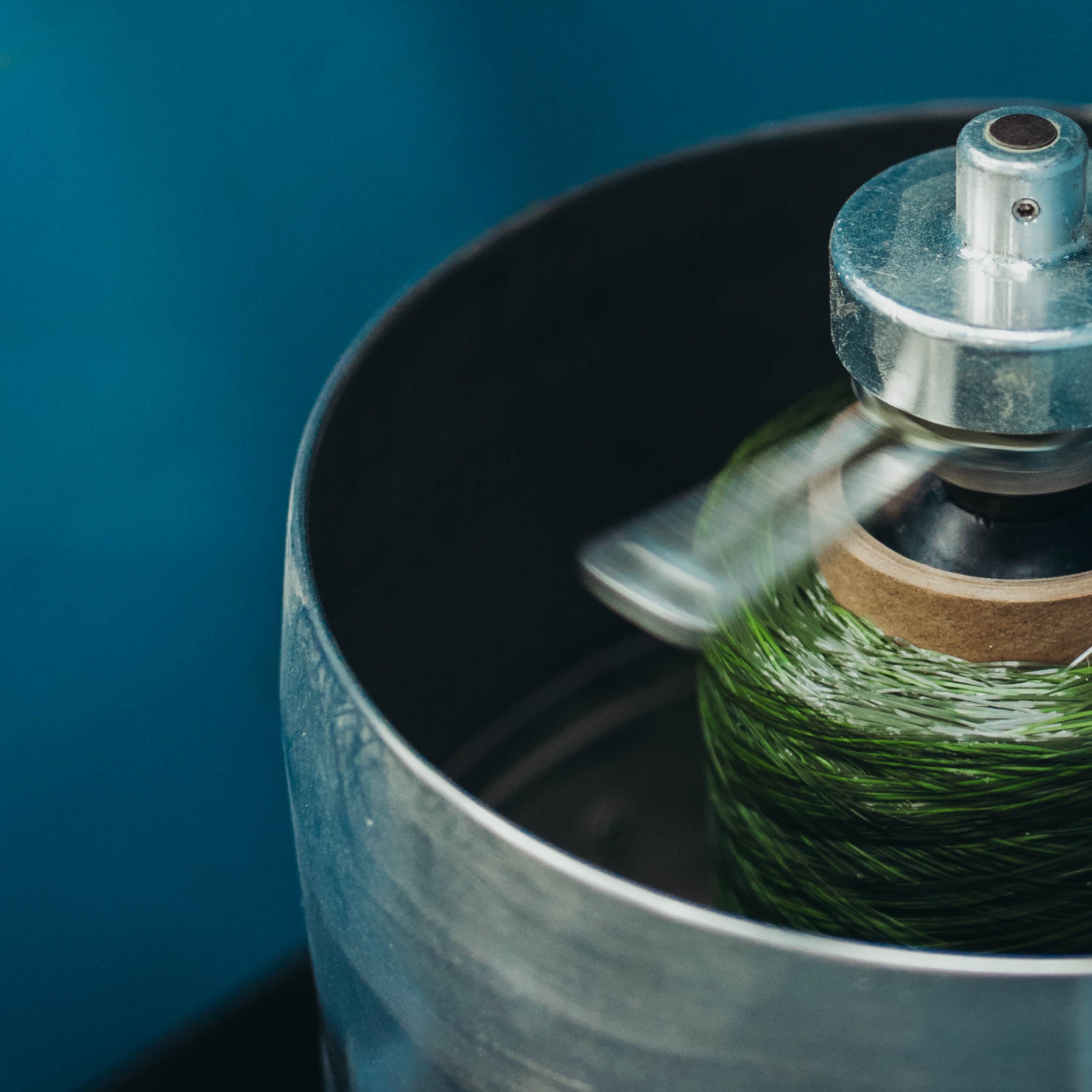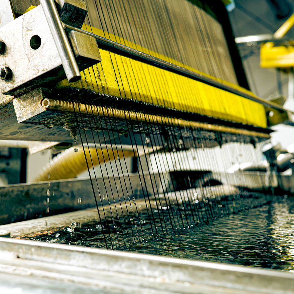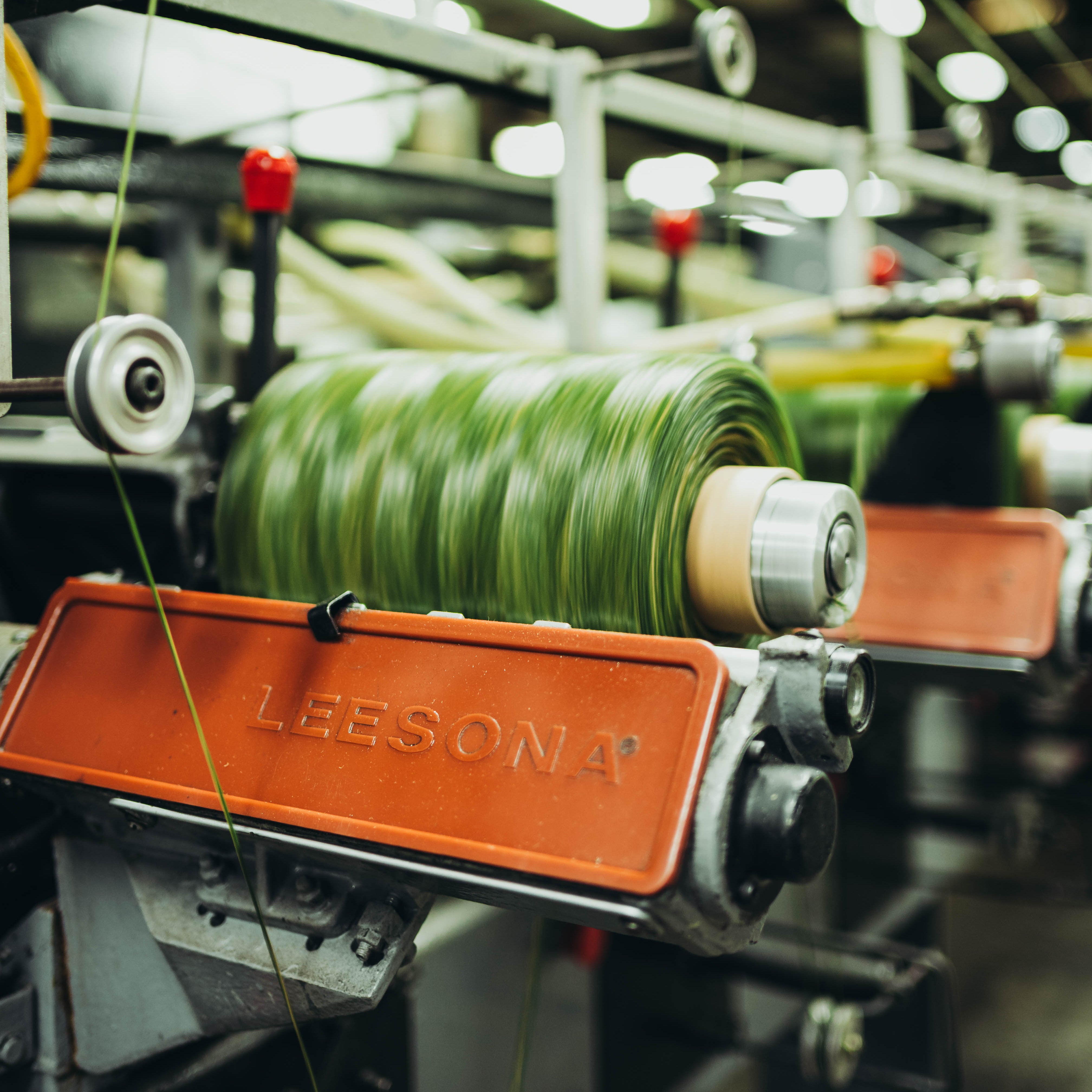 Photo right: The extrusion process in real time. How we produce the highest quality yarn on the market.