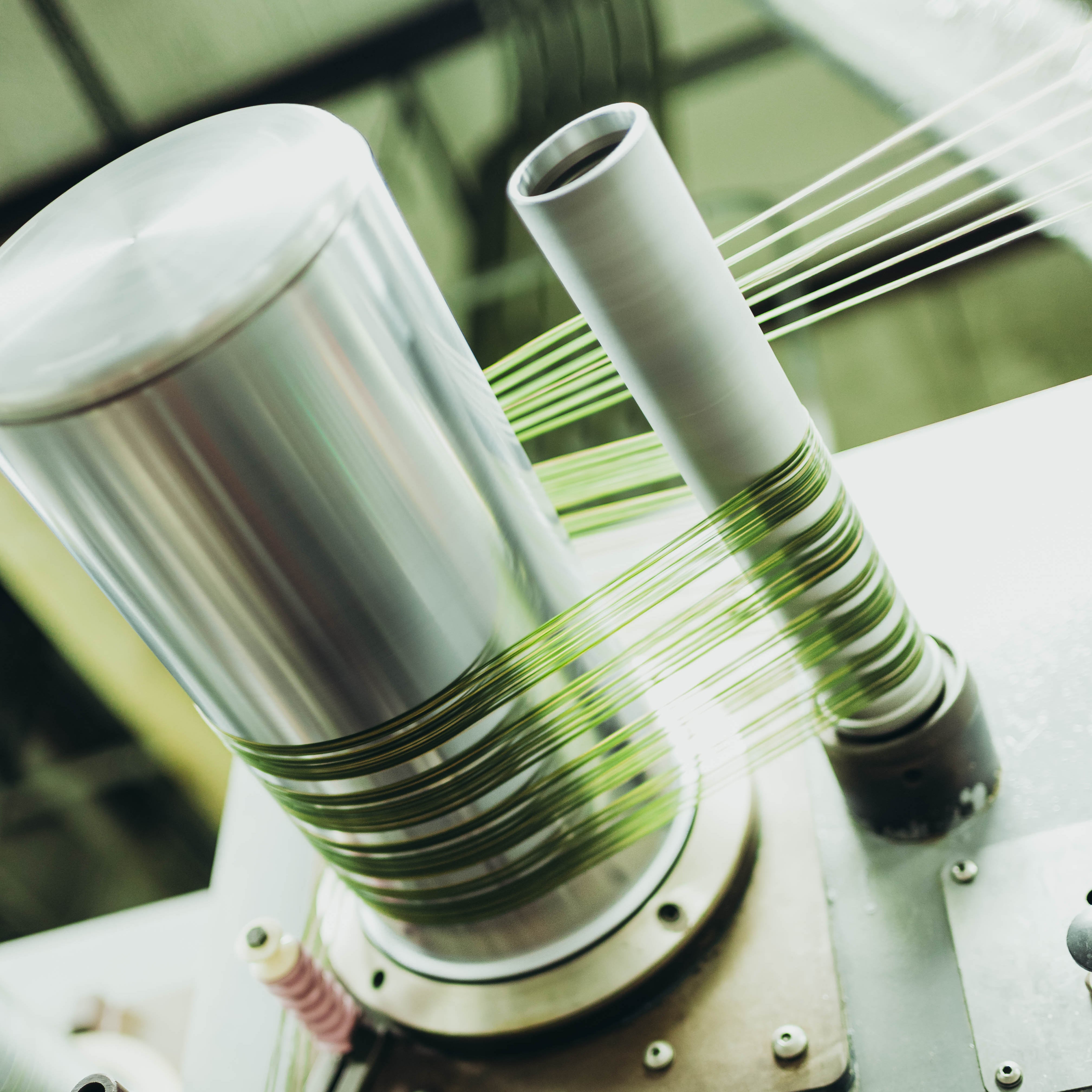 Photo left: The last stage of our nylon yarn being extruded.