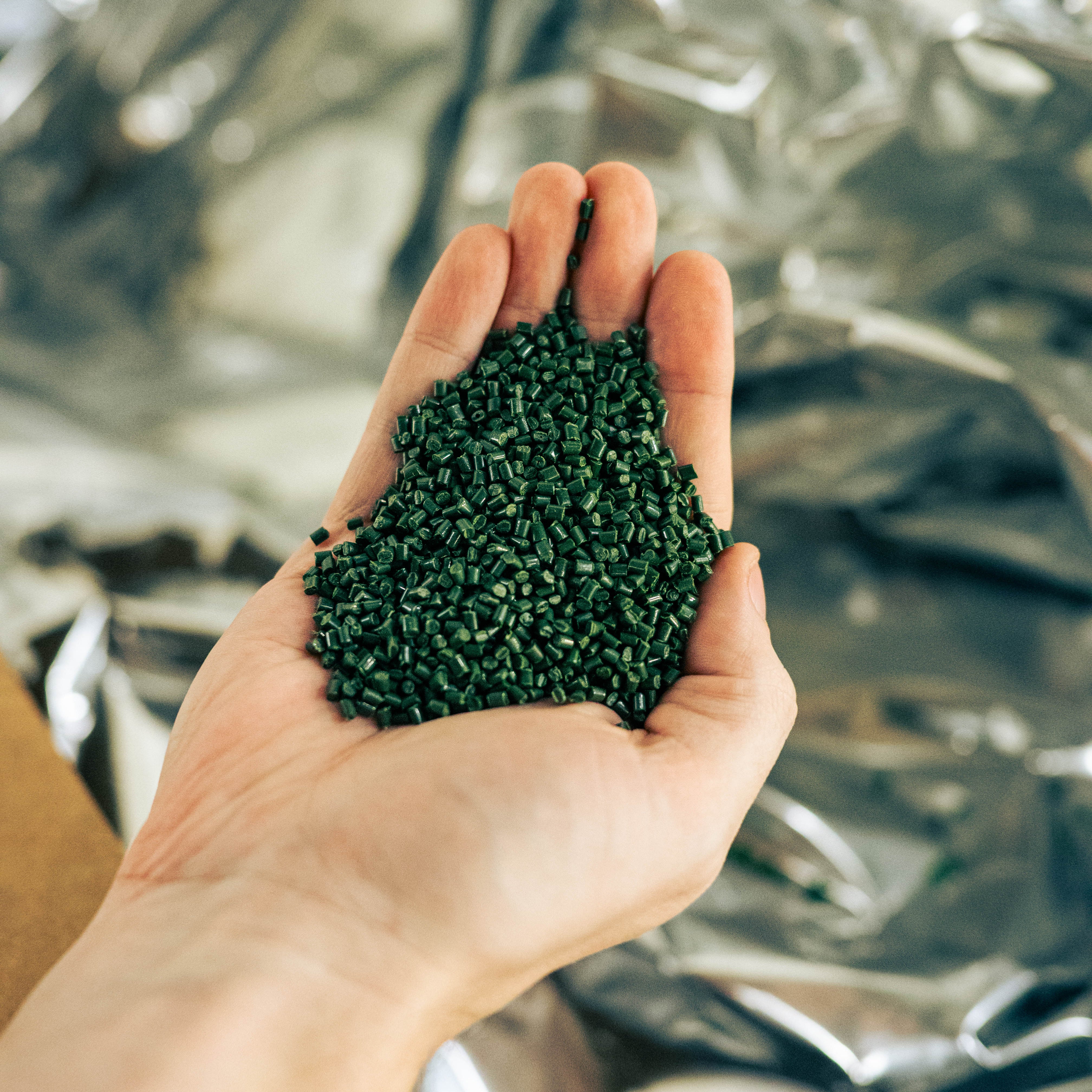 Photo left: Nylon resin which is the first step to creating our industry-leading nylon yarn.
